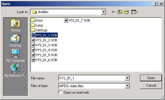 Select all the VOB files and the corresponding .IFO for the main group of VOB files which